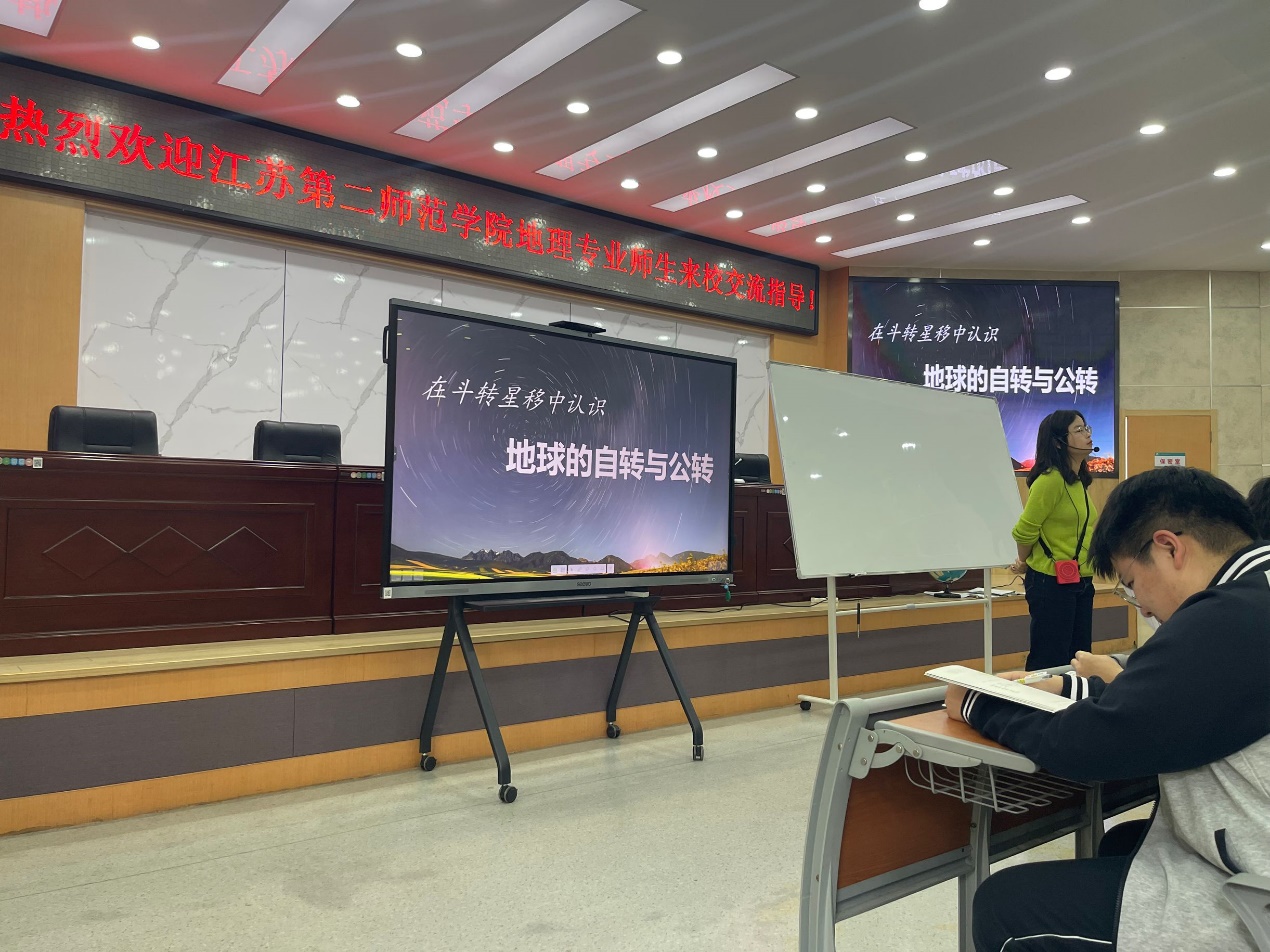 见习期间,师范生通过听课观摩、教学研讨和校园参观等形式,深入了解中学地理课堂的教学组织方式、课堂管理策略及学校校园文化和办学理念。在“青藏地区的自然特征与农业”“服务业区位因素及其变化”“环境问题及其危害”“地球的自转与公转”等多节初、高中示范课堂中,教师们灵活运用情境导入、问题引导和案例分析等教学方法,充分调动学生课堂参与度,以扎实的专业功底、精巧的教学设计和生动的课堂互动,充分展现了地理学科的独特魅力与育人价值,为师范生提供了鲜活、生动的教学范例。