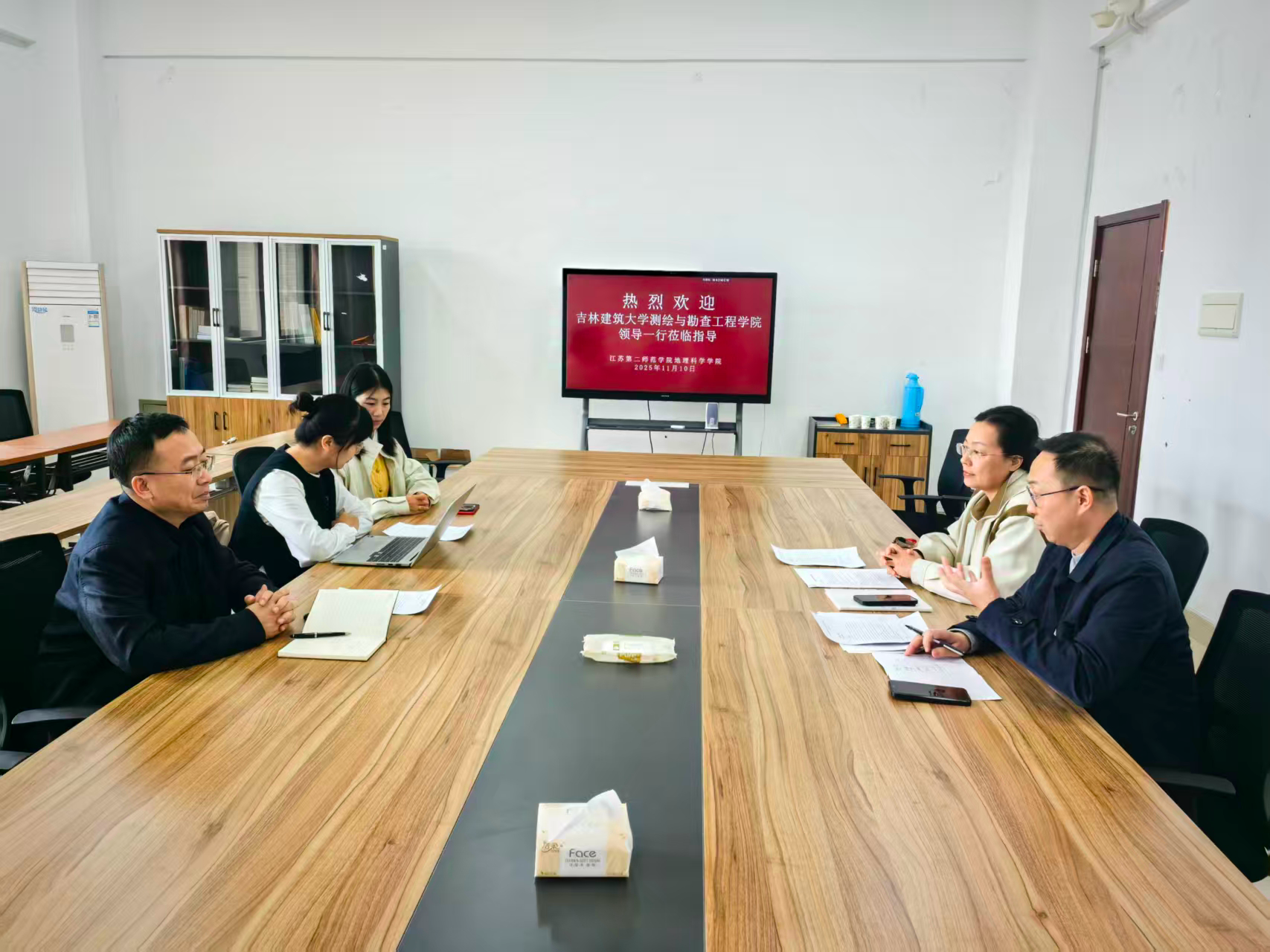11月10日,吉林建筑大学测绘与勘查工程学院副院长王怀宝教授、测绘专业负责人陈思副教授莅临我院,就地理信息科学专业的建设与发展、人才培养模式改革以及学生就业前景等议题展开深入座谈交流。我院副院长王丽、地理信息科学专业负责人夏泽龙及专业教师代表王广蕊出席了本次会议。