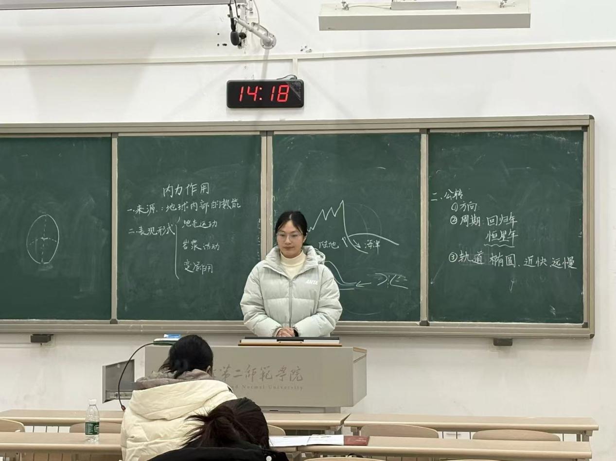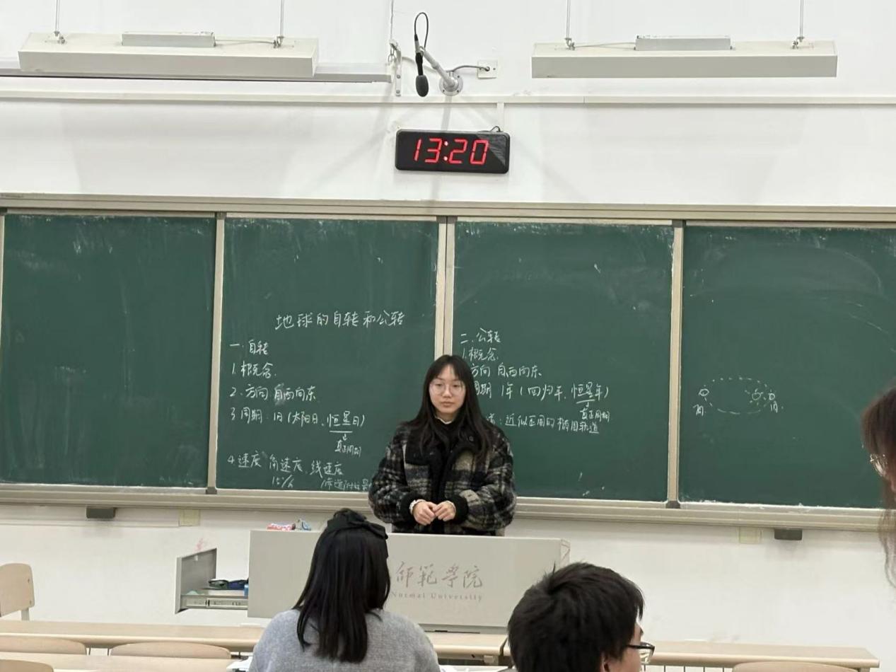 三位老师在同学们试讲时认真记录,对同学们认真的态度和一些精彩的讲述给予了充分的肯定,同时也一针见血地指出问题所在并且提出合理的修改意见。台下的同学们也在仔细观察,集他人之所长,反思自己的不足,进一步优化教学细节。活动最后,专家针对所有学生的表现,提出了意见和建议,指出了如教学环节衔接不够流畅、学科术语使用不够准确等常见问题,并鼓励同学们关注新课标改革的要求,注重跨学科内容的融合。